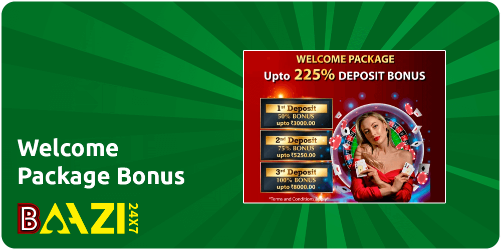 Those users who create an account and complete verification on the Baazi247 casino site receive their first bonus automatically.