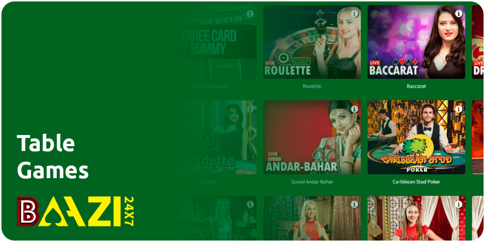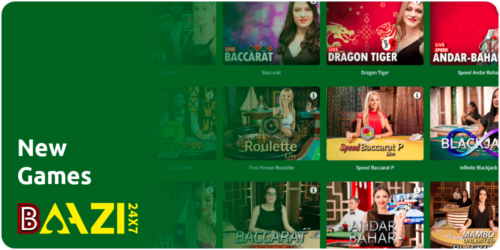 Playing live casino games is an enjoyable experience on our website since our live dealers are professionals and always navigate you throughout the game. Once you open this section at Baazi247, you will find over 400 high-quality games developed by prominent software providers. The most-played games in the lobby are as follows: