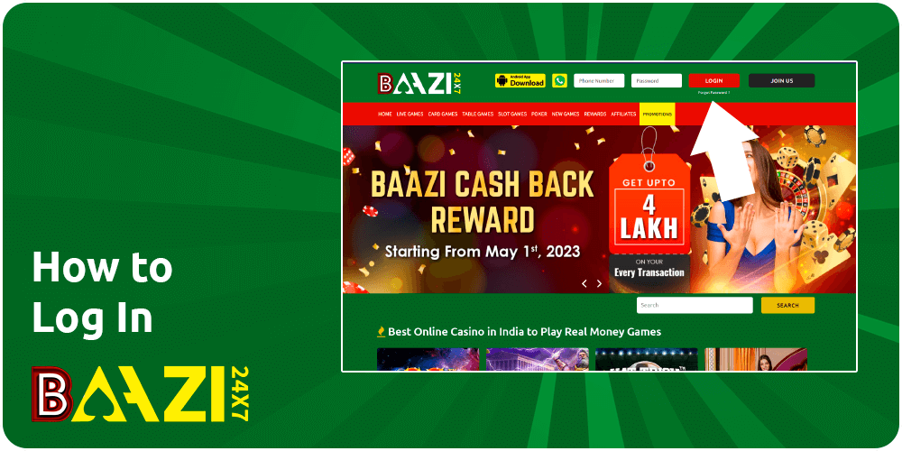 In order to enter your profile after you closed the site and opened it again, you have to go through the Baazi247 login. The algorithm is as follows: