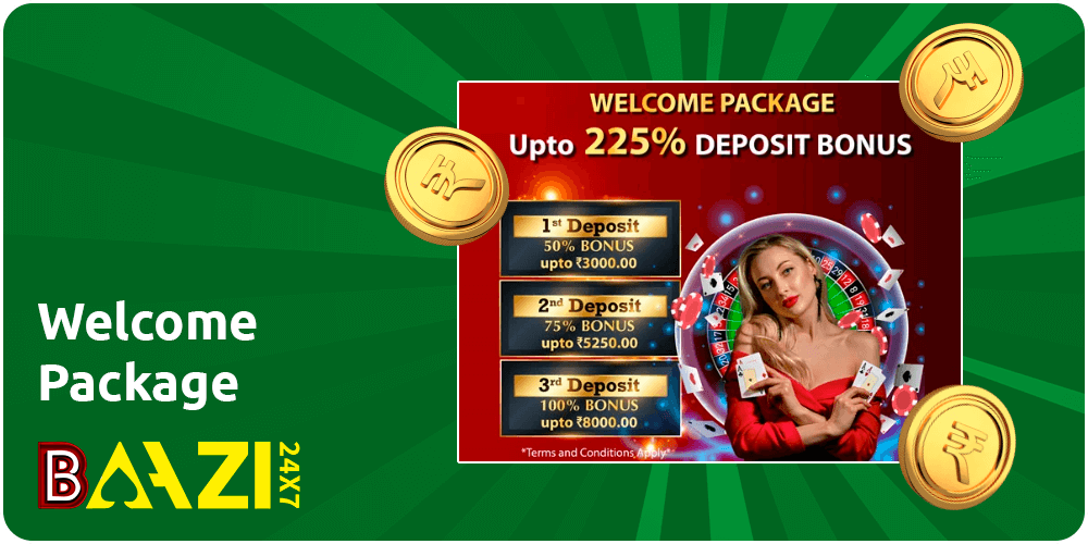 The Welcome Package on Baazi247 is an offer for new players that includes three deposit rewards. The offer is only available to new players who have completed the registration and verification process. Check out this brief guide, and claim your promo: