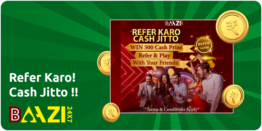 Baazi247 is currently running an exciting promotion called “Refer Karo! Cash Jitto!!” This promotion allows players to earn real cash by referring friends to the site. To participate, all players need to do is refer their friends to Baazi247 and have them make a top-up and an equivalent turnover. Once this is done, the referring gambler will receive a one-time real cash prize of INR 500. This promotion is a great way for players to earn extra cash simply by sharing their love for Baazi247 with their friends. So don’t miss out on this opportunity to earn real cash – start referring your friends to Baazi247 today.